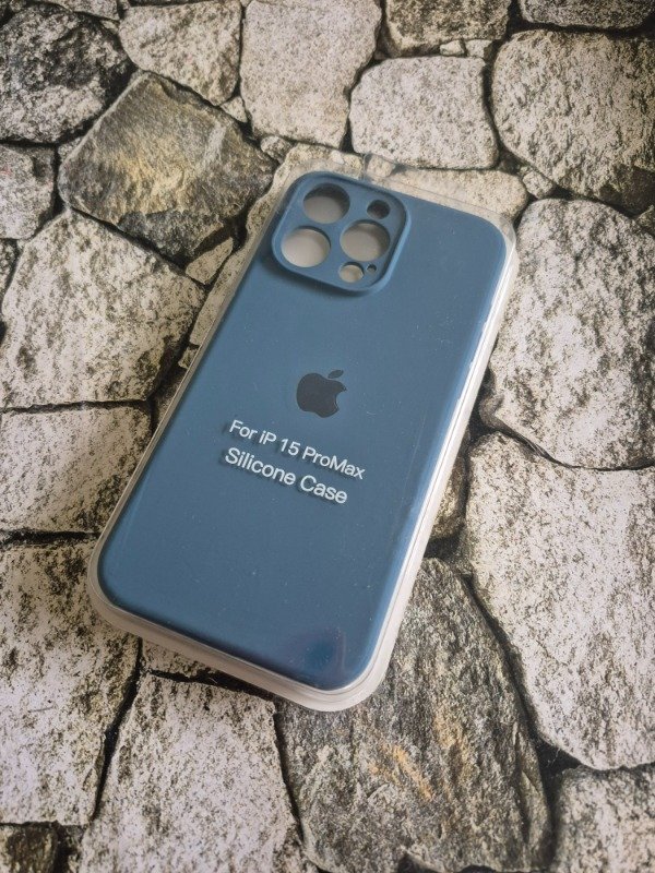 Funda silicone case cubrecamara con logo Iphone 15 Pro Max azul