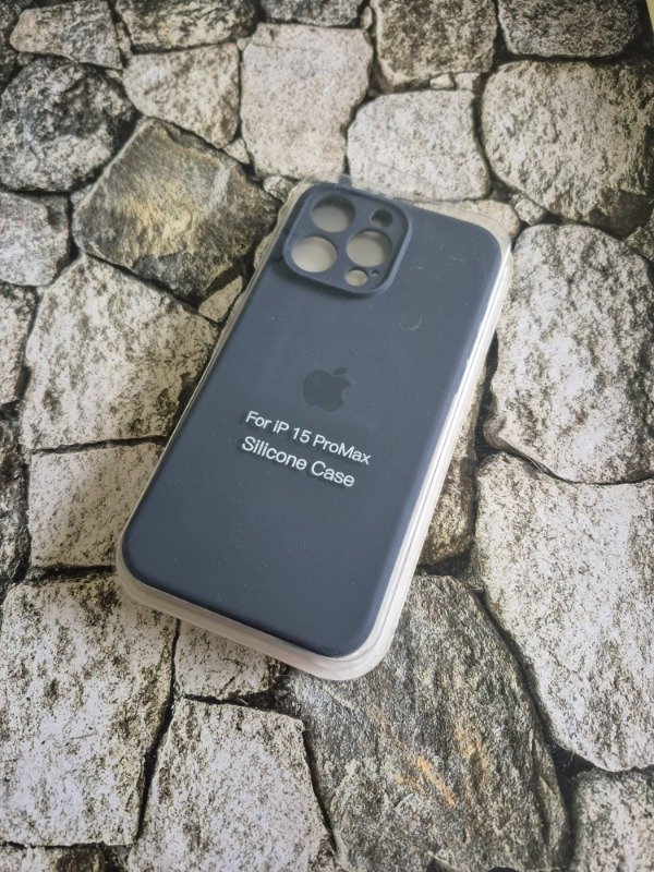 Funda silicone case cubrecamara con logo Iphone 15 Pro Max azul oscuro