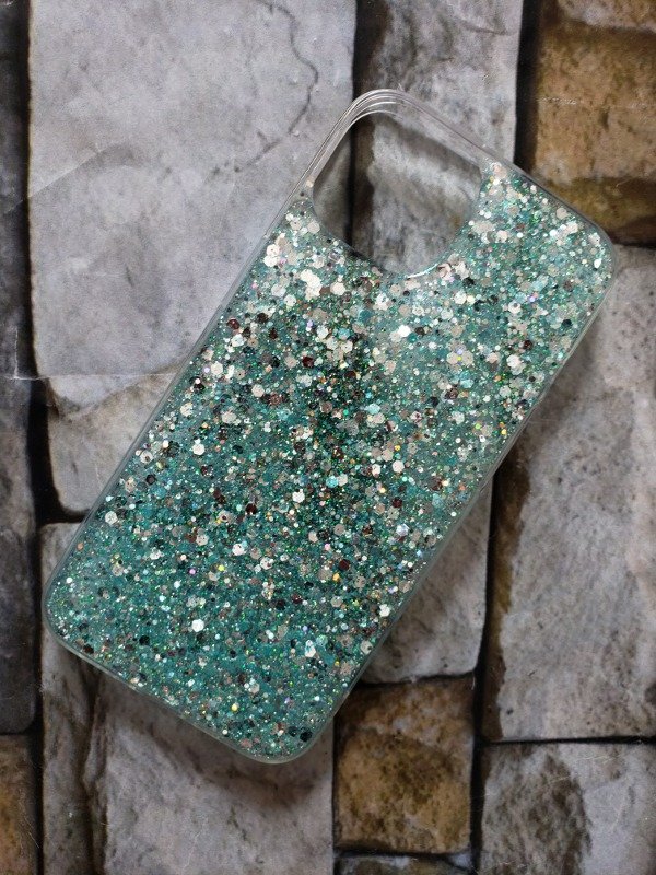 Funda rígida glam Iphone 14 celeste