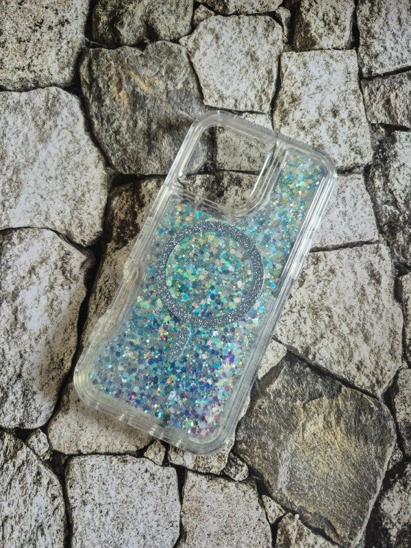 Funda bumper glam MagSafe Iphone 16 Pro Max celeste tornasol
